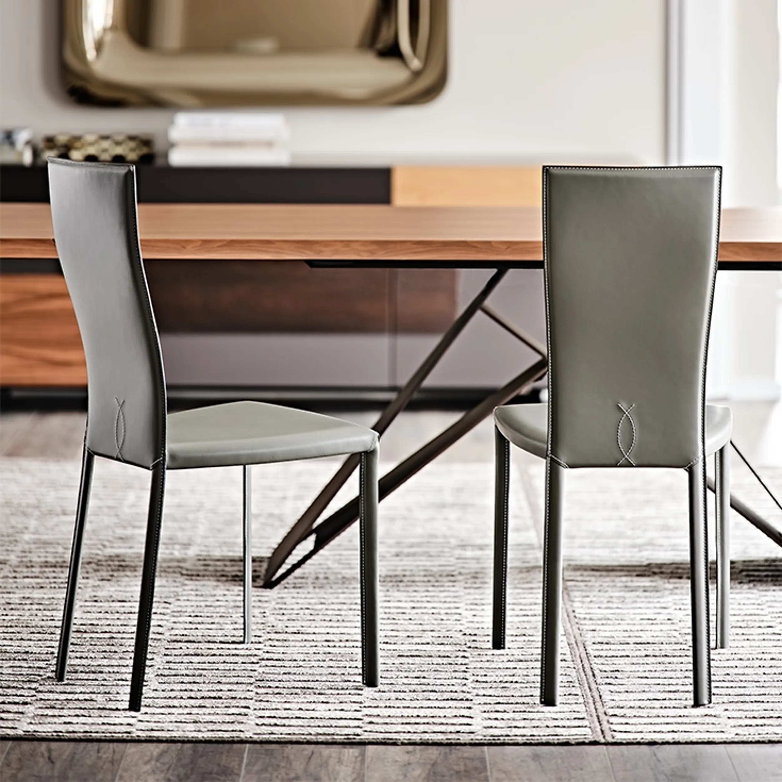 In negozio potrai vedere dal vivo le più esclusive proposte in commercio, tra cui anche quelle da pranzo design firmate dal noto e rinomato marchio Cattelan Italia. Le sedute costituiscono tra i mobili e oggetti accessori imprescindibili in ogni casa, per tale ragione disponiamo in negozio di una vasta offerta di soluzioni da scegliere basandoti sulle tue preferenze. Ogni soluzione Cattelan Italia garantisce una buona resa estetica indipendentemente dal locale cui è destinato, poiché organizza gli spazi valorizzandoli appieno. Sedia Nina di Cattelan Italia in cuoio: saprà attrezzare ottimamente l'area pranzo o il living della tua abitazione, unendo doti di praticità e design.